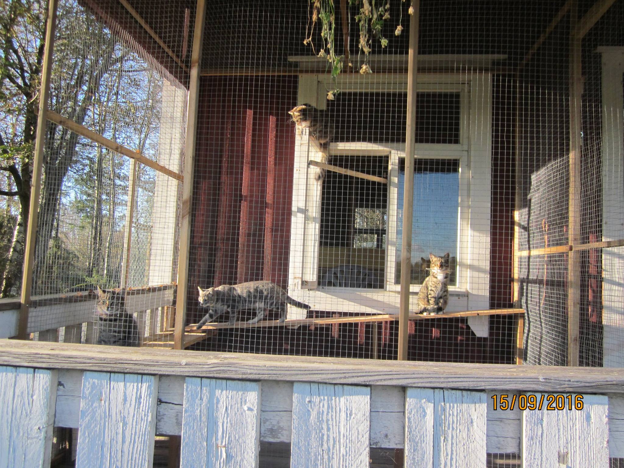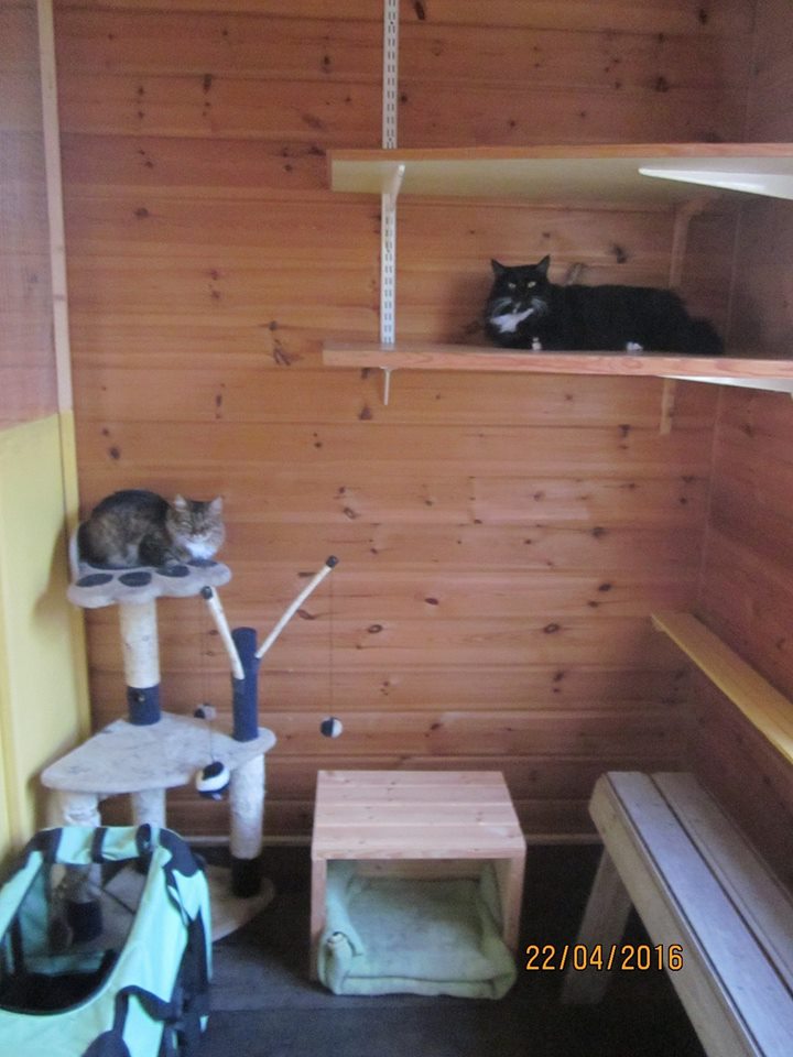 I kattpensionatet finns totalt 5 burar. Det finns både burar med anslutning till utebur och enbart inneburar. Storleken på burarnas inre del är ~3,7m2 och har full takhöjd, så katterna har gott med utrymme att röra på sig.